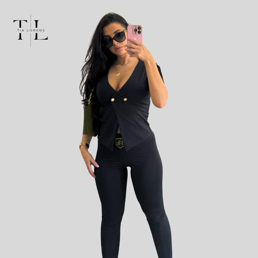 Tia Lorens Elegance Button Lycra Set – Black