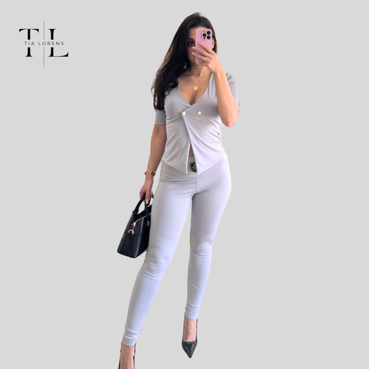 Tia Lorens Elegance Button Lycra Set – Light Grey