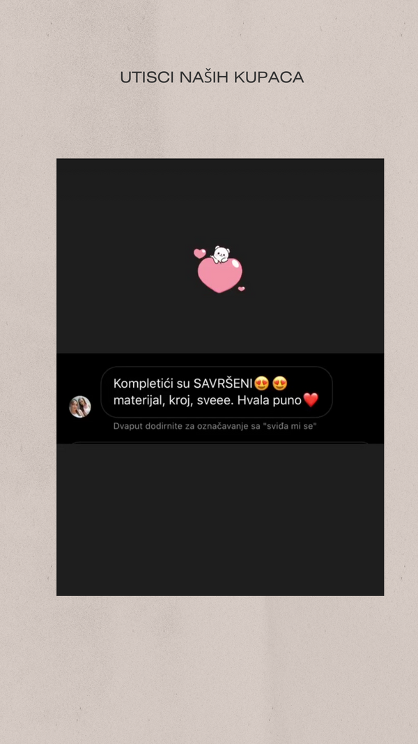 🏭 Važno je da znaš: Tia Lorens garderoba se ručno šije u Srbiji – bez masovne proizvodnje i bez uvoza. To znači da nosiš unikatni proizvod. Zbog pažljivog procesa šivenja, potrebno je do 7 dana da kreiramo model za tebe. Takođe, postoji mogućnost šivenja dužih nogavica, rukava i sličnih izmena / dodataka po potrebi. Za takav vid porudžbine molimo te piši na WhatsApp. Hvala ti na strpljenju i podršci domaćem brendu koji danas broji preko 10.000 zadovoljnih žena! 💕